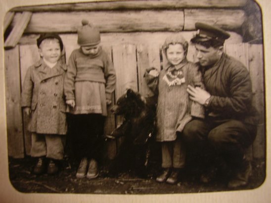 Это 34 - й километр, мы там жили, пока строился Мирный... справа наш папа, медведица Машка, мы с братом и соседка... тоже Мирный...