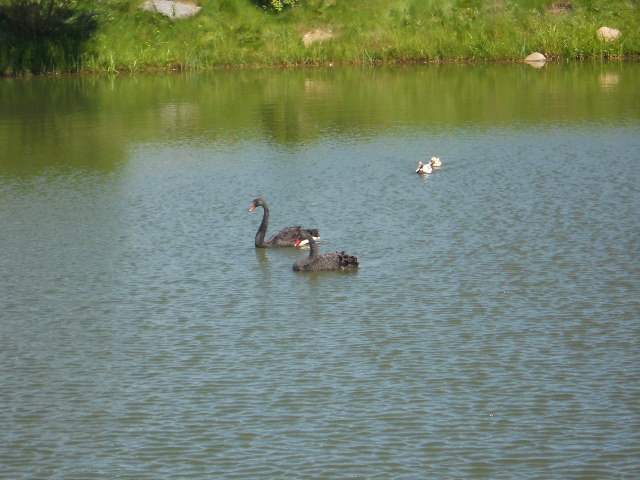 а лебеди чудо... мы вчера были на оленьем сафари и там в прудике плавал такой красавец...