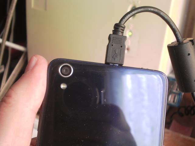 6 Так должно выглядеть подсоединение кабеля. Теперь можно включить смартфон.